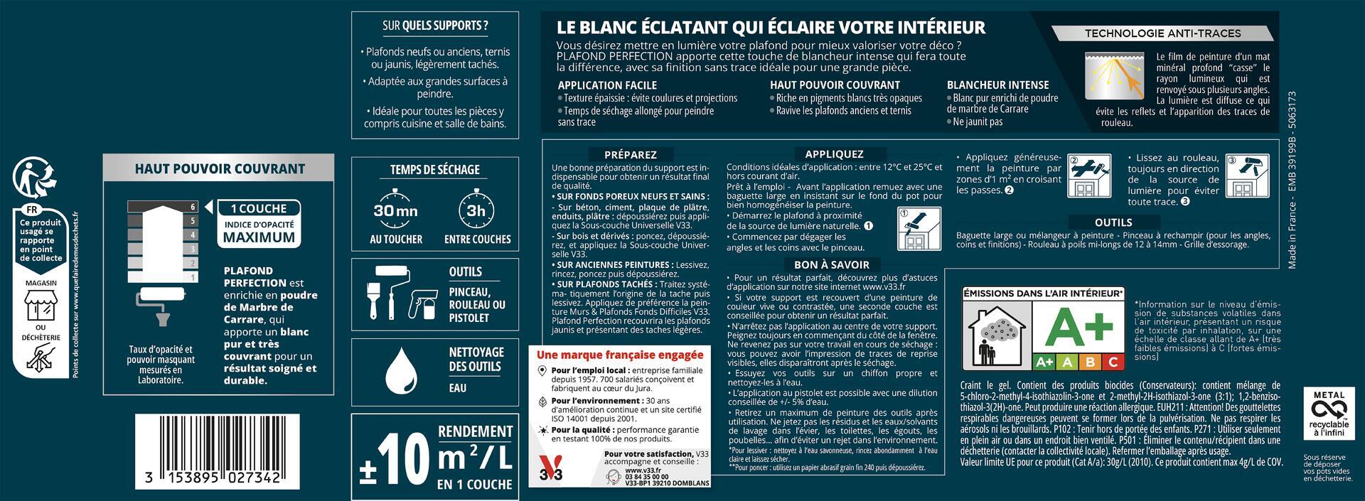 • Haut pouvoir couvrant : Riche en pigments blancs très opaques. Ravive les plafonds anciens et ternis.