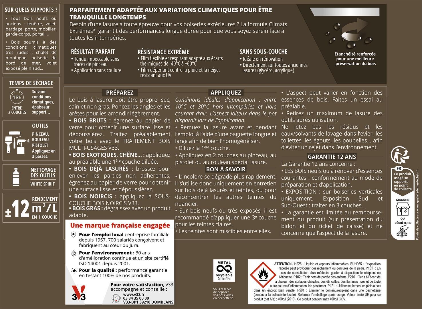 - Appliquez en 2 couches au pinceau, au pistolet ou au rouleau spécial lasure.