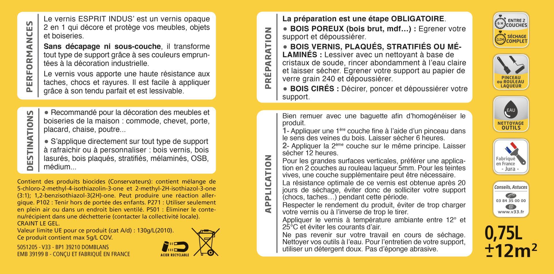 - Le vernis V33 est facile d'application et facile d'entretien car lessivable