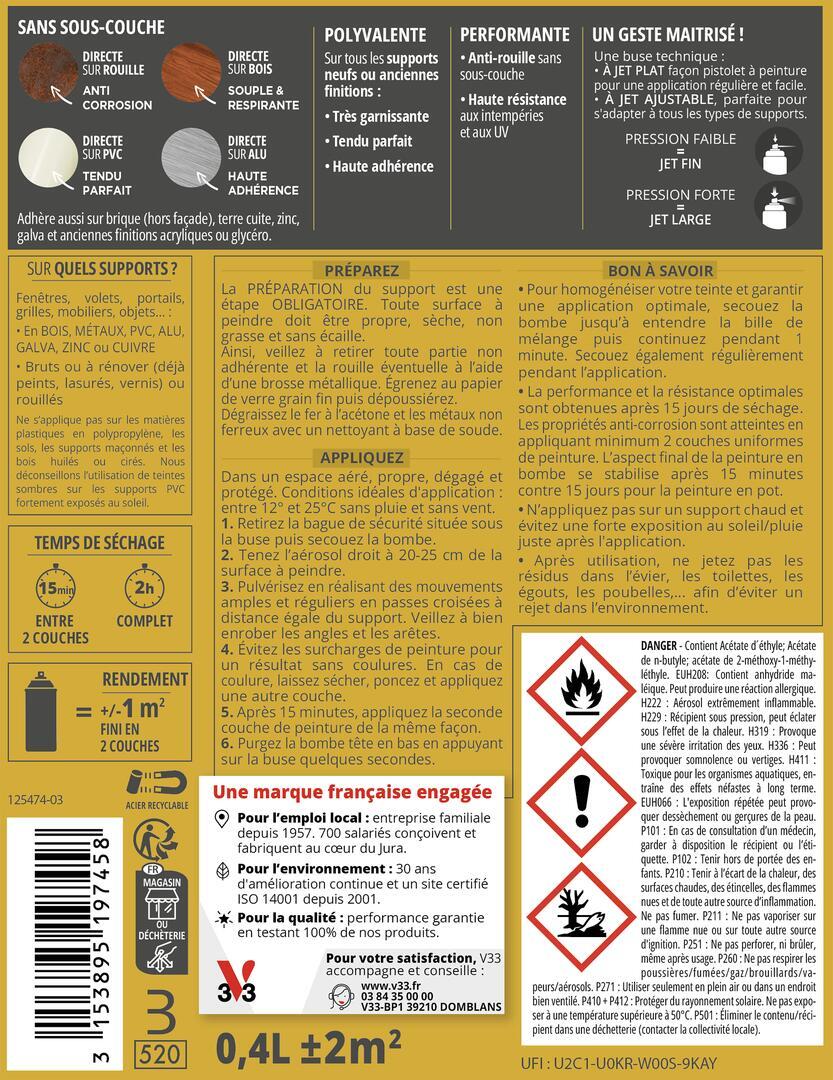 L’aérosol Multi materiO ® s’applique sur : objets, mobiliers, fenêtres, volets, portails, grilles,…