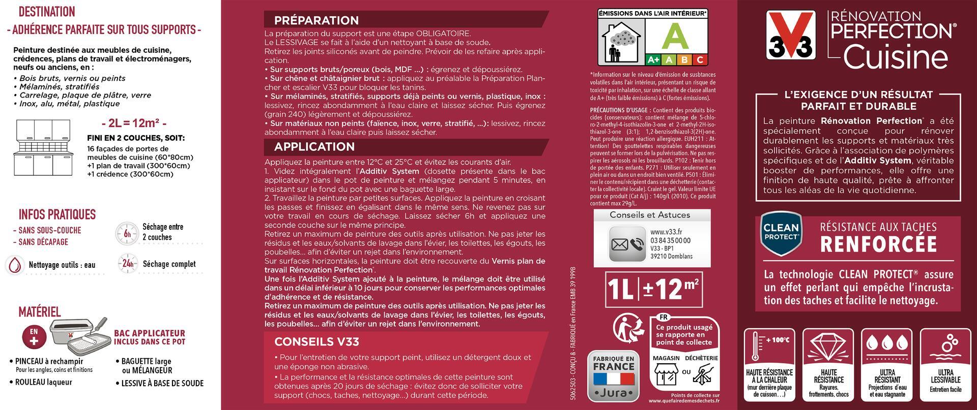- Technologie Clean Protect exclusivité V33 : protection renforcée contre les taches, graisses et produits ménagers