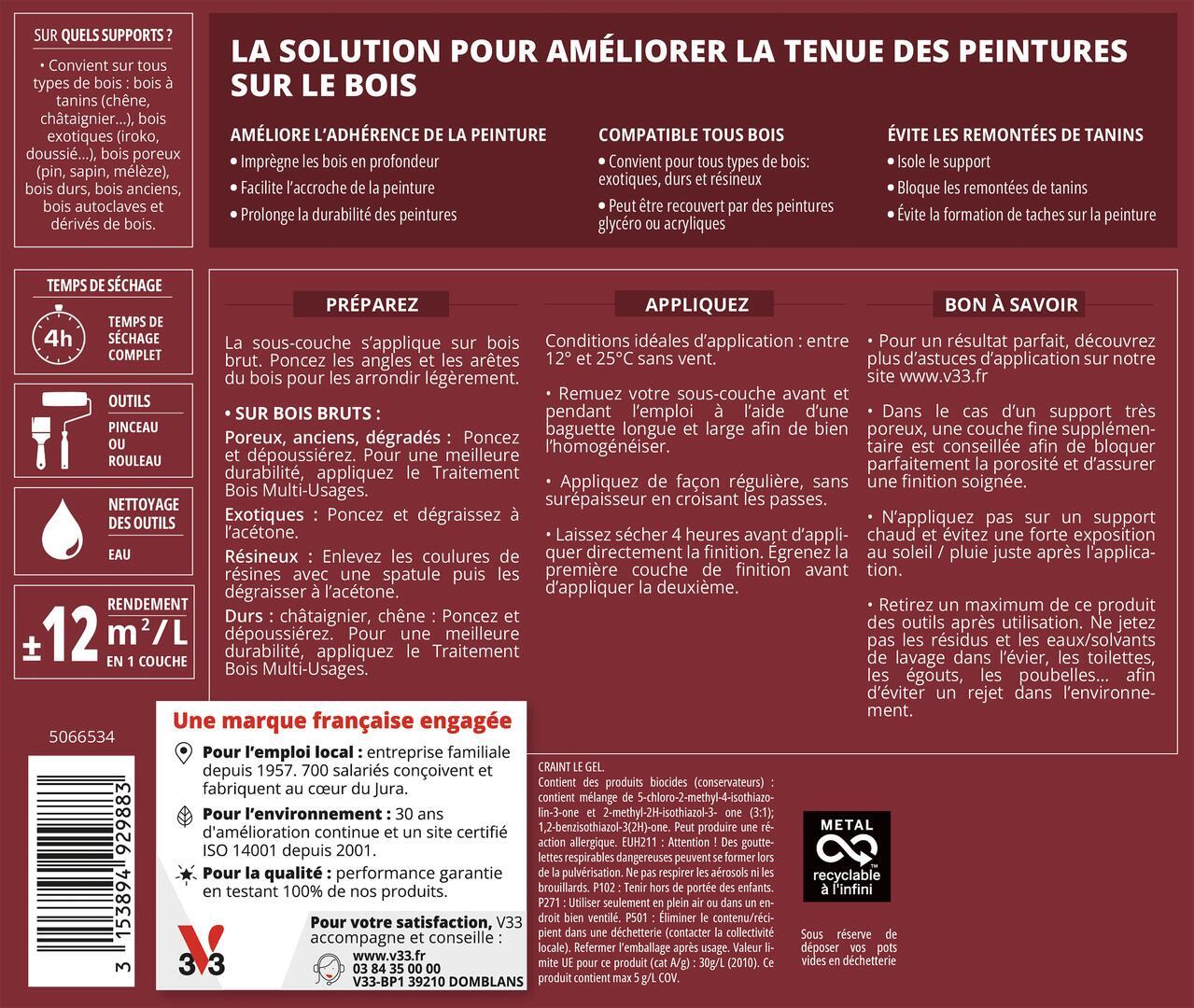 La SOUS-COUCHE V33 s'applique sur BOIS BRUTS.